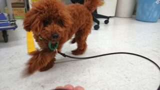 近くの公園までお散歩に行きました! 自前のイージーウォークハーネスを付けて お散歩に行きました! 始めは久しぶりのスタッフとの散歩に 興奮していたようですが オスワリの指示を出して一度落ち着いてから お散歩スタート(*^▽^*) 風が強く、...