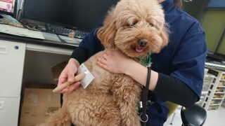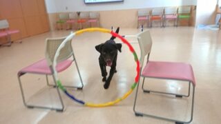 ジェントルリーダーをつけたまま歩く練習を行いました! ジェントルリーダーは口周りに 紐がくるため違和感を感じて取ろうと 立ち止まってしまう子が多いのですが ルメちゃんも始めは顔を振って取ろうとしていましたが 「オイデ」の合図で上手に歩くこと...