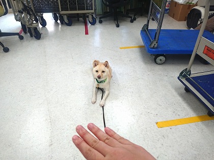 遠隔の指示での「オスワリ」、「フセ」が出来ました!