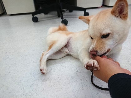 ワンちゃんが落ち着いてお腹を見せてくれると