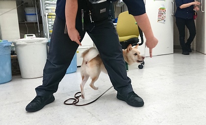 福丸ちゃんはまずハンドタッチで軽く遊んで