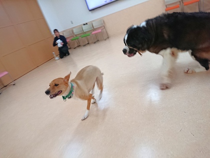 ワンちゃん同士で遊ぶことで人と遊ぶのとは