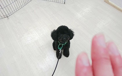 ルメちゃんも初めはスタッフの横にオスワリをさせて