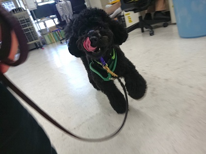プードルジェントルリーダーをつけたまま歩く練習を行いました!