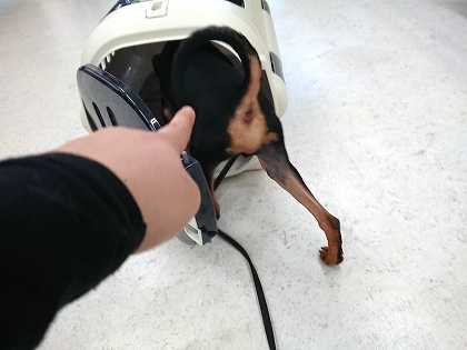 指示と指さしだけで上手にクレートに入ることが出来ましたq(≧▽≦q)