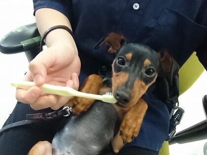 お手入れの1つ、ハミガキの練習をいていきました!