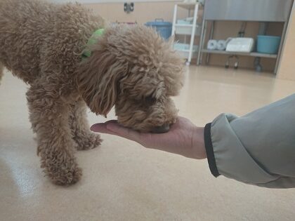 最終的には男性スタッフの手の上のフードを食べることが出来て