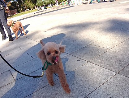 上野公園に着くとプリンちゃんが他のワンちゃんに