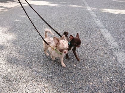 公園で2頭一緒に歩いてみました!