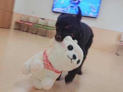 ドッグランでおもちゃを使って遊びました!