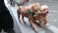 サークル越しに尻尾をブンブンに振って