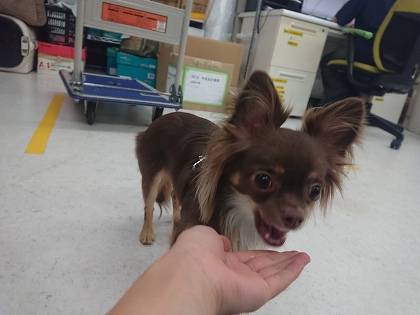 地面に置いたご褒美を食べることが出来ましたよ♪