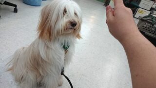 様々な指示の出し方のオスワリに挑戦しました! オスワリと言っても手で誘導をしたり 声だけで指示を出したり 遠隔で離れた状態でオスワリの指示を出したりと 様々な指示の出し方があります! サマーちゃんは始めはマグネットと呼ばれる 鼻先にご褒美の...