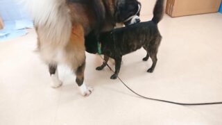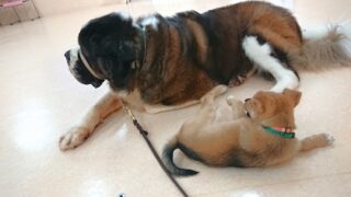 セントバーナード 聖斗ちゃんのしつけ 110 保護犬ちゃんと交流しました! 自分よりも小さな保護犬ちゃんに 聖斗ちゃんは優しくゆっくりと近づいてくれましたよ♪ 保護犬ちゃんと同じ目線になるように 聖斗ちゃんが自分で「フセ」をしてご挨拶をしていました。 お互いに挨拶が終わると保護犬ちゃん... 2025.10.08 セントバーナード